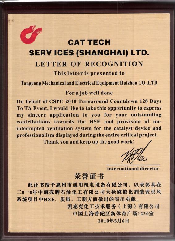 • 珠海BP、凯泰克化工所颁发的荣誉证书